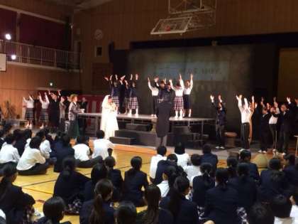芸術鑑賞を行いました。今年は”ミラマーレ・オペラ”さんに、オペラ「てかがみ」の公演をしていただきました。1年生には出演もしてもらいました。歌やセリフなど役者さんになりきって演技していました。これがきっかけで演技の興味を持ち、将来のスターが誕生するかもしれません。見に来てくださった保護者のみなさまありがとうございました。