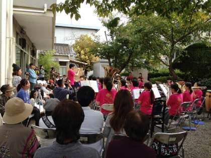 10月25日(土)、巽南老人憩いの家で毎月第4土曜日に開かれている「ふれあい喫茶」のやすらぎタイムで吹奏楽部が演奏しました♪