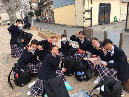 他校の人や小学生と一緒に利用しています。エネルギー補給したら、午後の部に出発です!