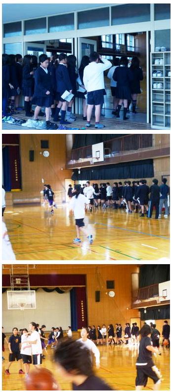 本校正門入口で、生徒会本部役員による説明・諸注意を受けた後、吹奏楽部の演奏を聴き、2グループに分かれてそれ以外の部活動を見学しました♪