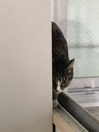 ※写真は学校2階に紛れ込んでいたネコです。びっくり!!