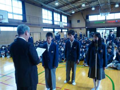 大阪市中学校総合文化祭の展示発表、美術の部に出展されていた優秀な作品を描いた人たちの表彰がありました♪