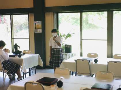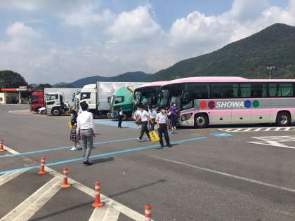 金立SAに到着。長崎の天気は良好のようです!昼食を取り、44期の一味は有田ポーセリングパークへ向かいます。体験もですが、ドイツ建築の宮殿、四季折々の花々や鮮やかな緑あふれる庭園など、散歩するのも非常に気持ちのいい場所です。