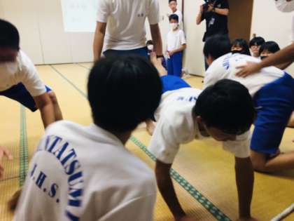 続いて、ぐるぐるバット、腕立て選手権、お米つかみ選手権!!体力、テクニック、チームワークで競いあっています!