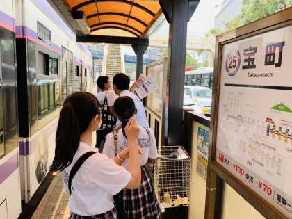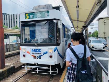 長崎市内の移動はもちろんコレ、チンチン電車です!一度は必ず乗るでしょう。長崎市内は山に囲まれた港町なので坂が非常に多いです。平地はチンチン電車、上にはバスを利用します。そのため長崎市内の人は自転車に乗らないというのもあながち嘘ではありません。