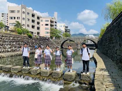 出島周辺には有名な眼鏡橋があります。また、川には飛び石が!これも長崎の名物でしょうか。シンプルに渡りたくなる、冒険心をくすぐられます!!また、ハートの石を見つけると幸せになれる?!あなたは見つけることができましたか??