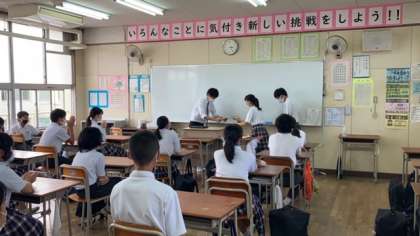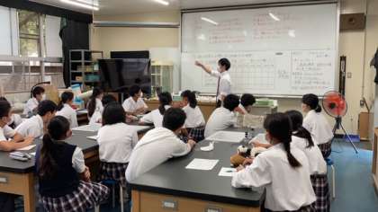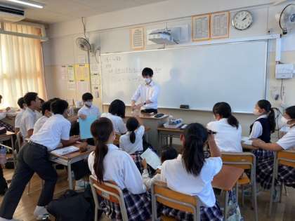 クラスは2−1、授業は2年生の理科を受け持っていました。授業は悪戦苦闘しながら、実験を多く取り入れ進めてくれました。実験の楽しさや身の回りの理科について教えていたので、生徒たちも楽しそうに授業を受けていました。