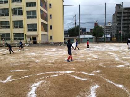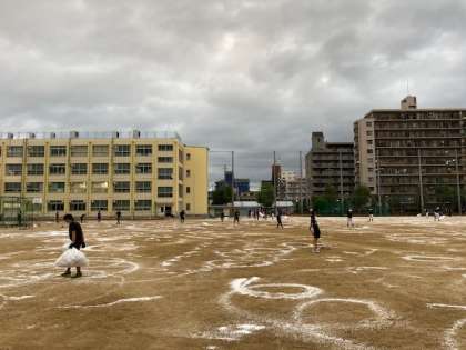 10月2日に実施予定のスポーツフェスティバル『SHINTATSU 2020』に向けて、グラウンドににがりを撒きました。