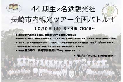 3年生は修学旅行から帰ってきてから、旅のエピソードをgoogle siteを使って各チームブログにまとめてきました。今回は修学旅行でお世話になった「名鉄観光社」とコラボさせていただき、より魅力的な「長崎市内観光ツアー」を提案します。これから長崎に旅行に行かれる「家族・カップル・学生・修学旅行生などなど」必見です!!