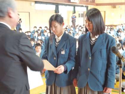 さる1月24日(土)に大宮中学校第2グランドで行われた、大阪市2・5・6・8ブロック合同ソフトテニス研修大会の第3位の表彰がありました♪