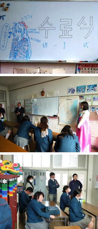 中学校に入学してからチョソン研での3年間を振り返り、毎週月曜日の取組みで学んだことを懐かしく思い出しながら修了書を受け取りました。