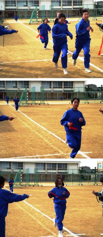 一生懸命頑張る生徒がほとんどですが、歩いてしまう生徒もちらほらの女子のレースでした。