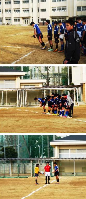 今回の試合は、相手チームのジャージが黄色ということで、鶴橋中学校の青色のジャージを着用しています。