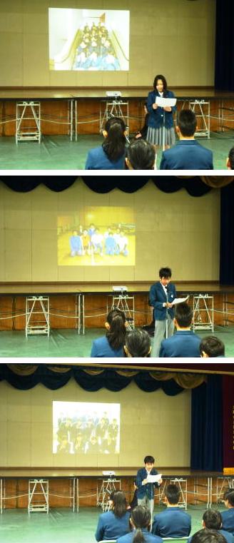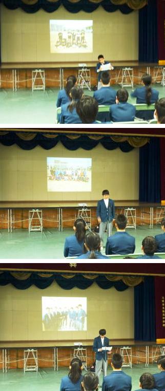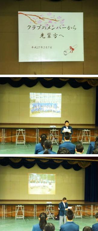 校長先生からの送ることばをいただいた後、各クラブ部長より卒業生に対してのメッセージを送りました。