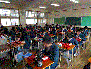 給食は 、主食(米飯)、主菜、副菜、汁物、牛乳などを組み合わせています。