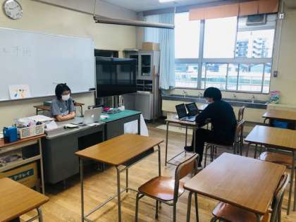 オンライン授業の様子です。こちらは音楽と美術のコラボ授業。