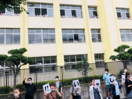 町の皆様に見送られ、出発しました。校舎の中からもたくさんのお見送りがあり、本当にあったかいなと感じました!!良い旅にしたいと思います。みなさんありがとうございます!!