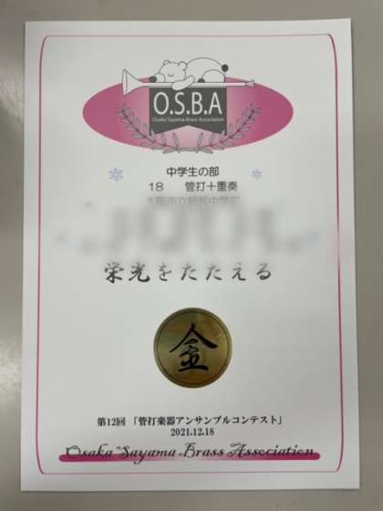 大阪芸大「管打楽器アンサンブルコンテスト」金賞受賞!