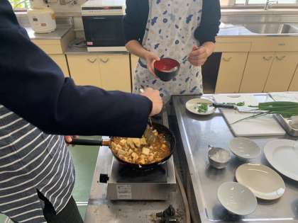 先週火曜日は3-1の「麻婆豆腐」の実習でした。