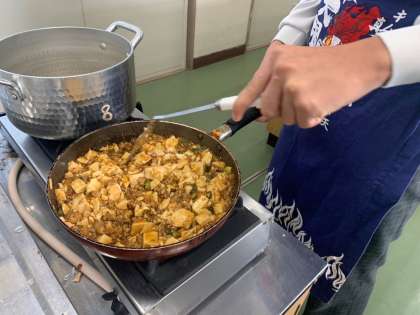 8時過ぎに登校して米を炊き、みんなで食べた麻婆豆腐は美味しかったと思います。
