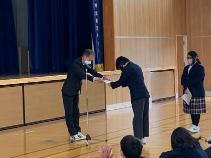 令和4年度修了式を行いました。1年生、2年生に校長先生から修了証が手渡されました。