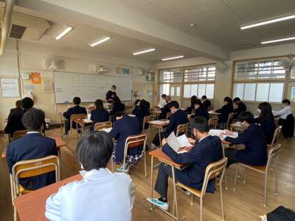 問題の内容は思考判断表現の観点を問う問題も多く、記述式の解答方法に生徒達は苦労していた様子でした。