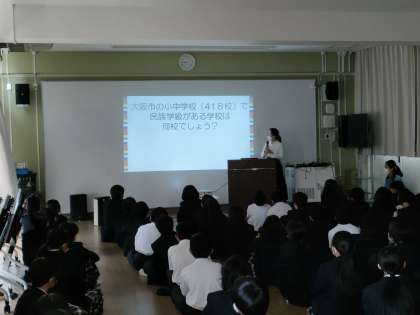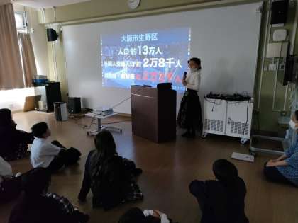 「チョソン研は、大阪市内小中学校約400校中、約100校あり、生野区には集中している理由」や「ルーツをもつ子の中には名が二つある子がいる」など色々な話を聞くことができ、たくさんなことを学ぶことができました。