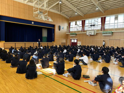 今日の1時間目はいじめ(いのち)について考える日の集会を行いました。校長先生から、いじめは誰にでも起こりうることやしんどそうな人がいたら声をかけてほしいということをご講話いただきました。