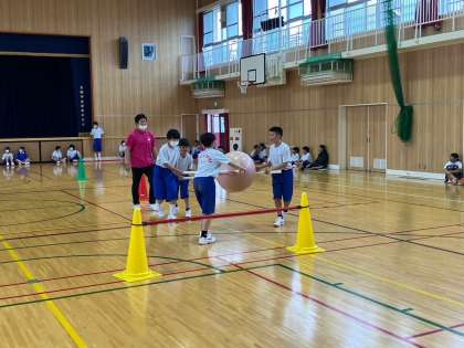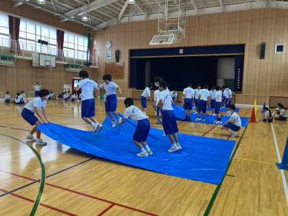 種目であるラジオ体操や退場等の動きの確認をプロジェクターを使って行い、その後は各学年、学年種目の練習を行いました。