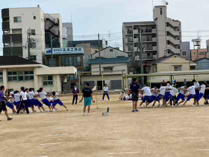 今日の6時間目に体育大会の全体練習を行いました。今日は開会式と閉会式の流れを確認後、綱引きの練習を実施しました。全体で自分の立ち位置や競技流れを忘れないようしてください。