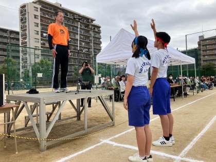 3年生が立派に宣誓して体育大会がスタートしました。