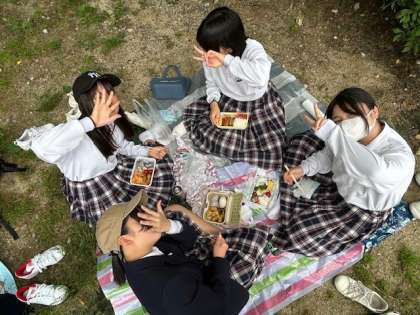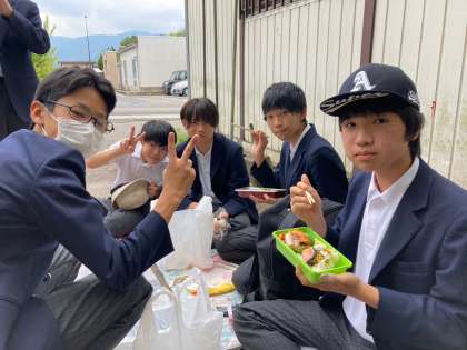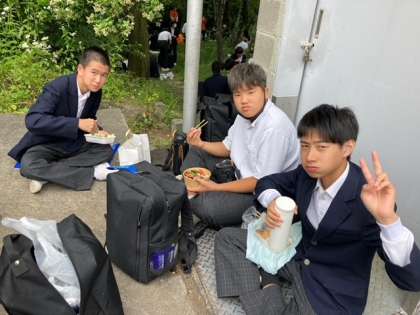 保護者の方に持たせていただいたお弁当を屋外で食べるのは、一段とおいしいでしょう。