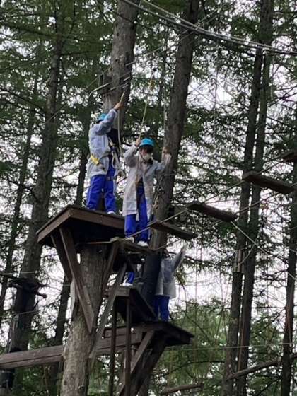 小雨降る中、ハイエレメントもインストラクターの指示のもと行っています。