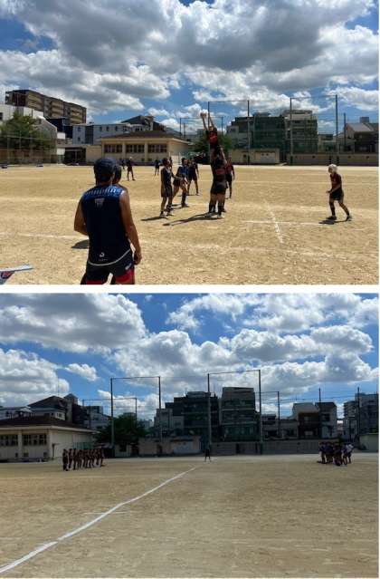 初めはポジションごとに分かれてそれぞれの課題のおさらいをし、それを踏まえて試合に臨みました。
