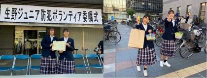 昨日、生野区役所で「生野ジュニア防犯ボランティア」の委嘱式が行われました。
