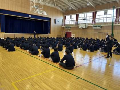 校長先生からは冬休みの過ごし方と各学年の学習への向き合い方についてお話をいただきました。3年生は受験、1・2年生はチャレンジテストと入試や成績につながるものが多いので、冬休みも勉強の習慣を絶やすことなく続けてほしいです。