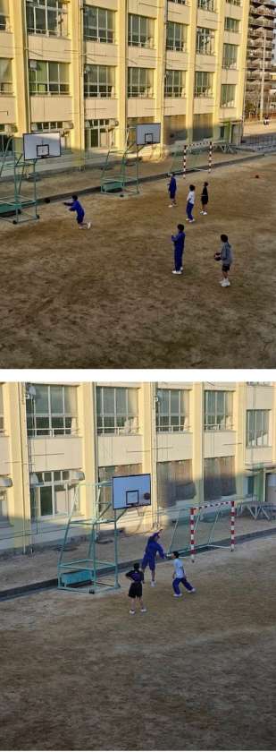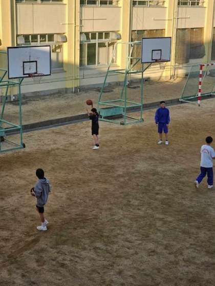 今日は男子バスケ部の活動はオフの日ですが、1年生が複数人集まり自主練習に励んでいます。