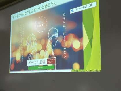 具体的なDVにあたる言動や行動を教えていただき、自分が被害に合わない、被害をくわえないためにはどうしたらよいのか。被害にあった時の相談場所なども教えていただきました。