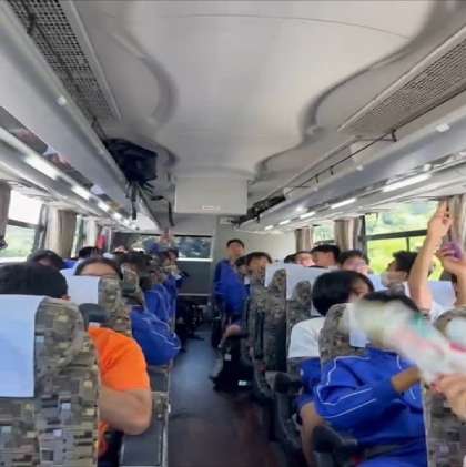 移動のバスの車内ではレクリエーションカラオケ大会が行われているそうです。ジャンボリ〜♪