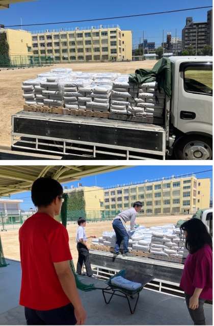 1袋20kgを100袋、教職員で搬入いたしました。