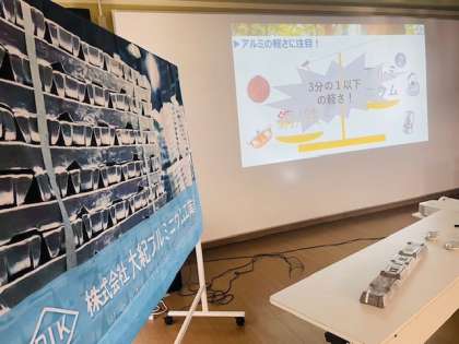 SDGsに関する取り組み実践の報告や、アルミを実際にどのように使っているかを教えていただきました。