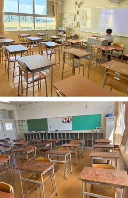 夏休みに入るとすぐに、1年1組と3年1組の床面と壁面のバリアフリー化の工事が行われました。
