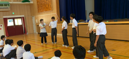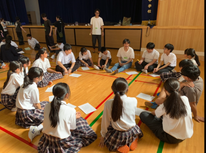 アイスブレイクから始まり、ジェスチャーゲームや夢について語るワークなど、劇団員の皆さんに準備していただいたさまざまなワークに対して積極的に取り組む1年生の生徒たち。
