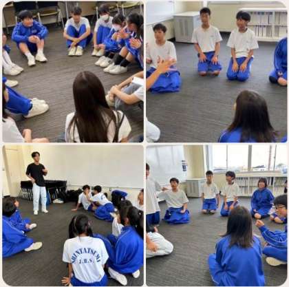 各クラス、約10人ずつの3チームに分かれて、室内でのアドベンチャープログラムが始まりました。