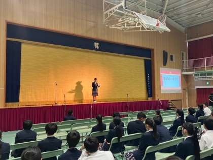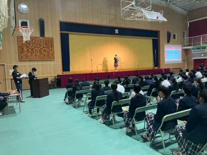 展示見学の後は、生徒の皆さんは体育館に移動し、体育館に集合しました。