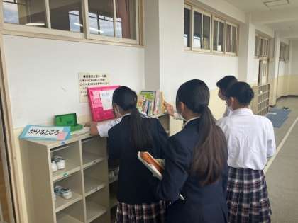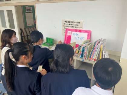 覗きに来てくれたり、本日はたくさんの生徒が移動図書館で本を借りていました。
