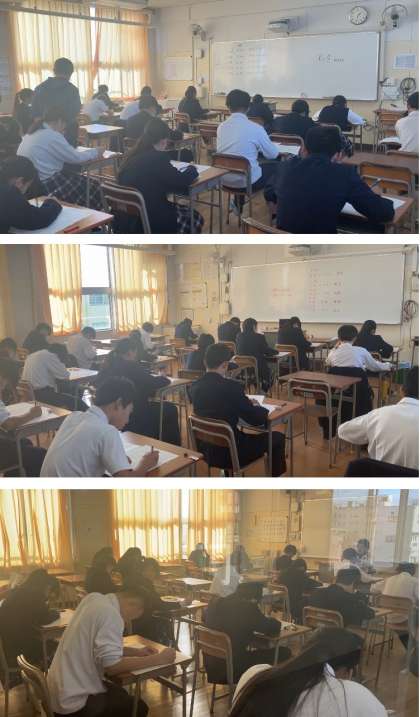 本日は3年生は第3回実力テスト、1・2年生は2回目の実力テストが行われました。