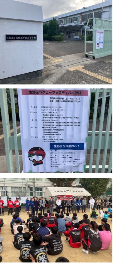 ラグビーが盛んな生野区において「生野から世界へ! 」をテーマに、小学生・中学生・高校生までが参加し、白熱した試合が行われました。
