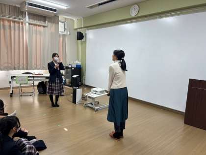 井上鈴佳先生をお招きし、お話しをしていただきました。井上先生は多くの学校や団体に向けて出張授業を行なっておられます。