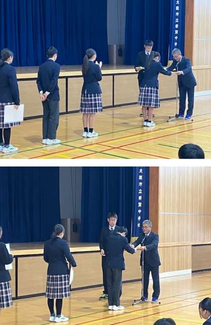 また、野球部では生野区選抜に選ばれた選手の表彰を行いました。